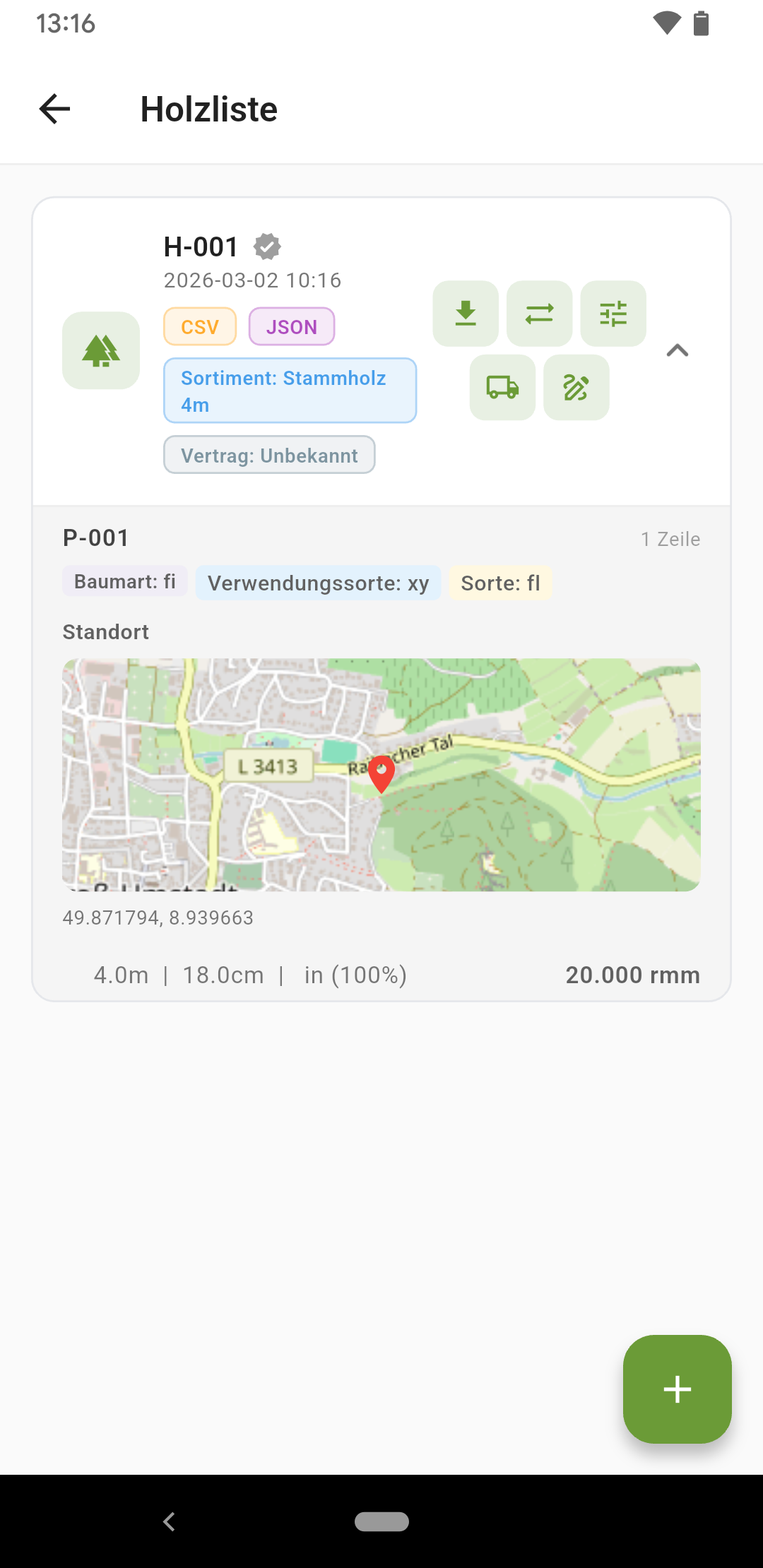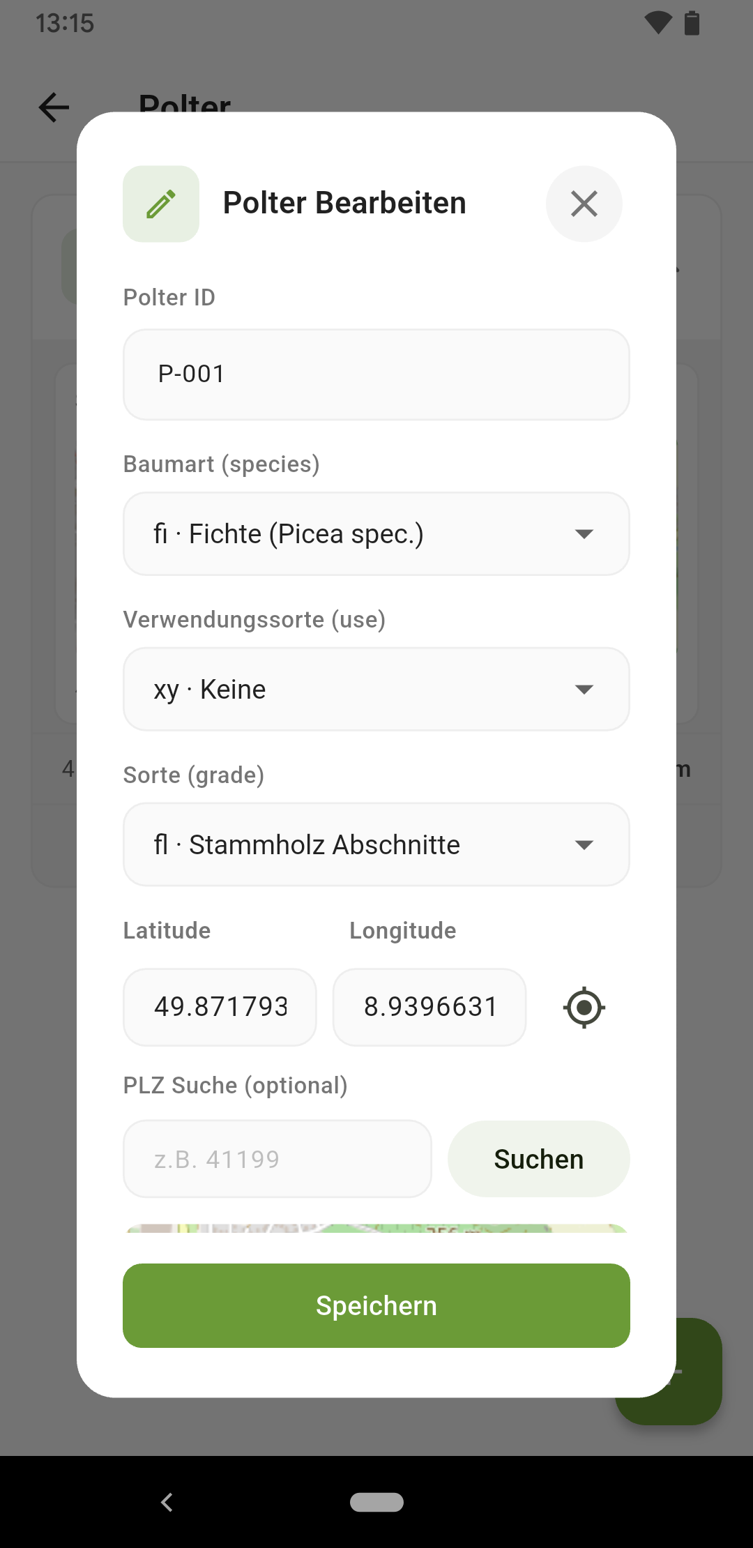 Abbildung 1: Holzaufnahme-App der Datendrehscheibe zur Polter- und Holzlistenerfassung, welche zurzeit am MMI entwickelt wird