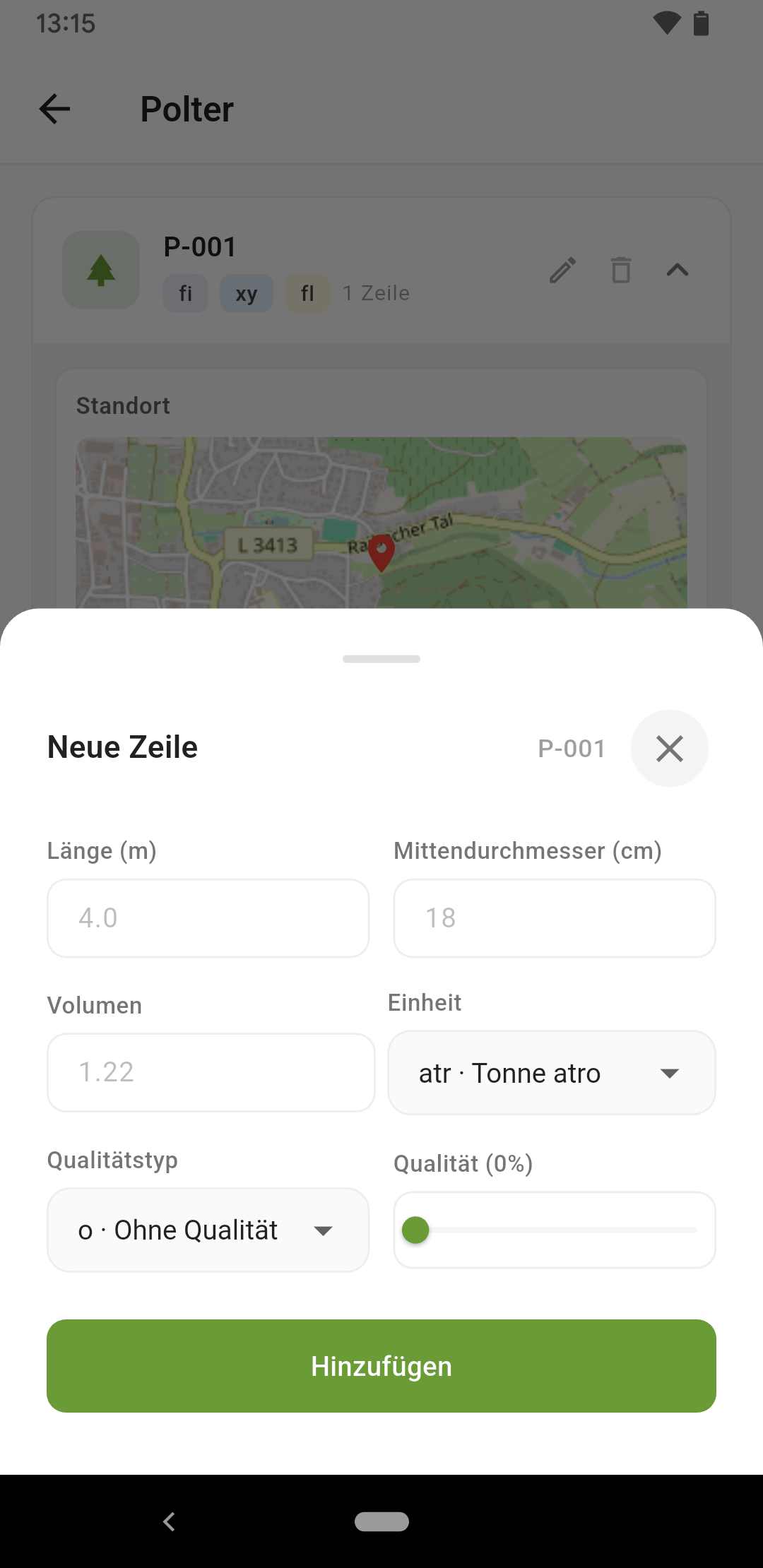 Die Poltererfassung stellt einen zentralen Bestandteil forstlicher Logistikprozesse dar und erfolgt bislang überwiegend manuell, wie beispielsweise über die Holzliste-App von Forstify, STIHL, oder Holzaufnahme-App der Datendrehscheibe (siehe Abbildung 1). Trotz vorhandener digitaler Werkzeuge basieren die Erfassungsprozesse häufig weiterhin auf subjektiven Schätzungen und manueller Dateneingabe, was sowohl ineffizient als auch fehleranfällig ist.